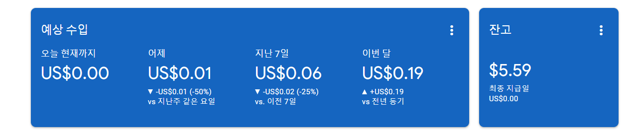 그거아시죠? 애드센스는 100달러가 되어야지 출금이 가능한거..1년 동안5 달러라니..