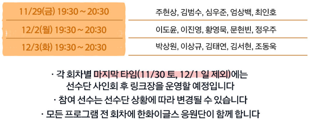구분 | 11.29 (금) | 11.30 (토) | 12.1 (일) | 12.02 (월) | 12.03 (화) |