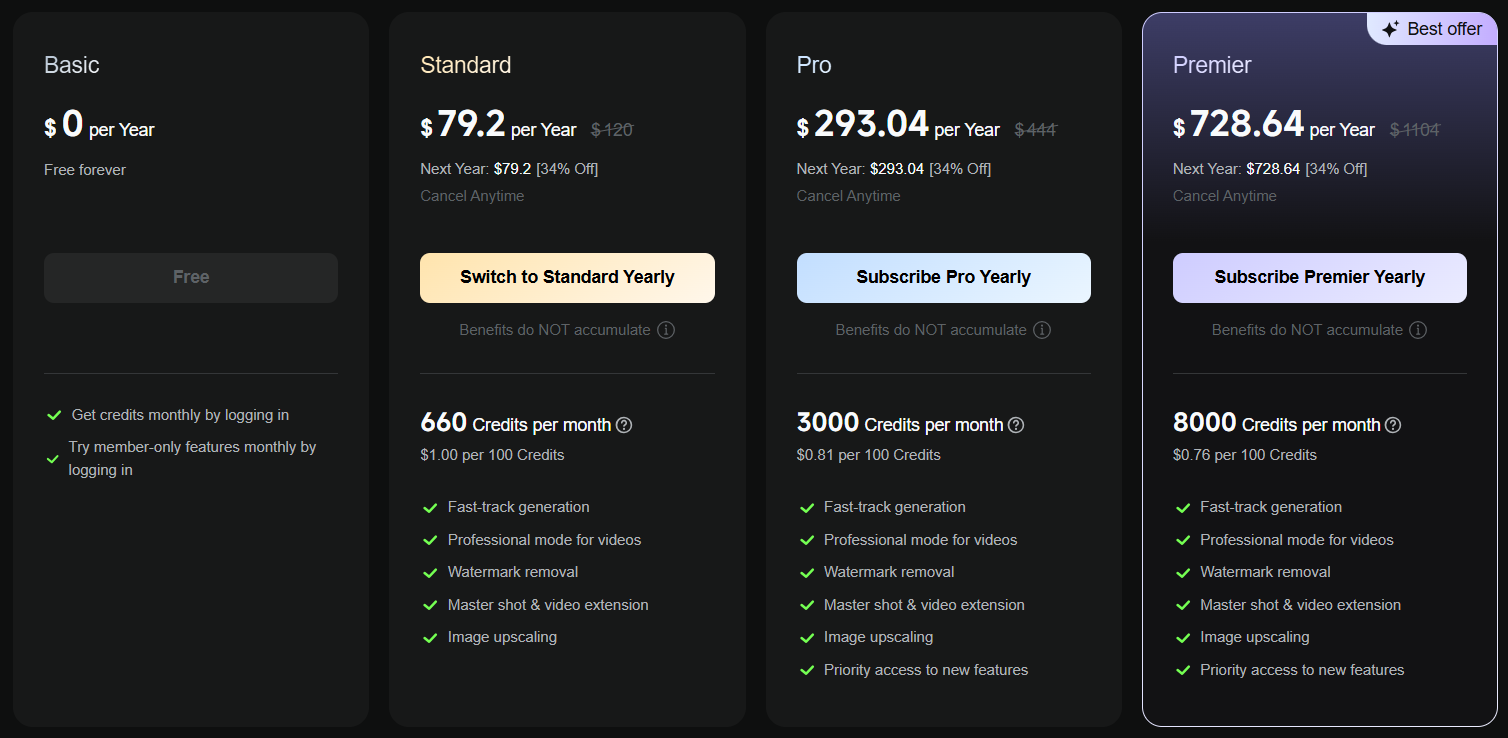 영상 두세개 만들고 나면 크레딧이 훅훅 닳아 없어져서 자꾸 소심해지더라고요.(무료는 월 166크레딧이 제공됩니다)